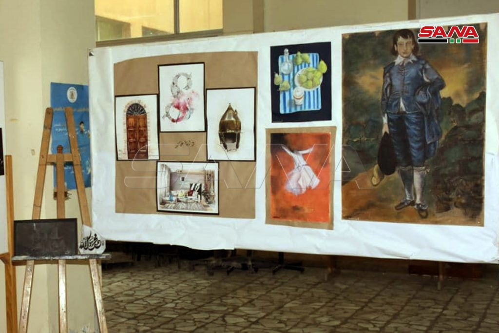 افتتح في كلية الفنون الجميلة والتطبيقية بجامعة حلب اليوم معرض جماعي تضمن أعمالاً فنية لطلاب من الكلية نفذوها خلال فترة الحجر المنزلي.