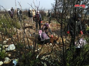 ديانا طه عاملة حراج نوهت بأن عملها لا ينحصر فقط في زراعة الغراس بل يشمل العناية بها وسقايتها بشكل دوري مبينة أنه تجري زراعة السفوح الجبلية بأصناف الصنوبر الجبلي والخرنوب والبطم والسماق والغار والحنبلاس في حين تزرع الغابات بأصناف الكينا والدردار السوري.