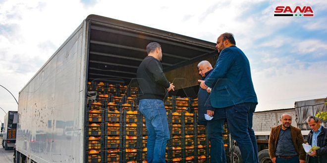 استمراراً لجهودها في تسويق الحمضيات وتخفيف التكاليف عن المزارعين سير فرع المؤسسة السورية للتجارة في اللاذقية اليوم قافلة تضم 11 شاحنة من الحمضيات إلى أسواق وصالات ومنافذ البيع التابعة للمؤسسة بمحافظات دمشق وريف دمشق وحمص وحلب والسويداء بعد استجرار المادة من حقول المزارعين وتوضيبها في مركز الفرز والتوضيب العائد للمؤسسة.
