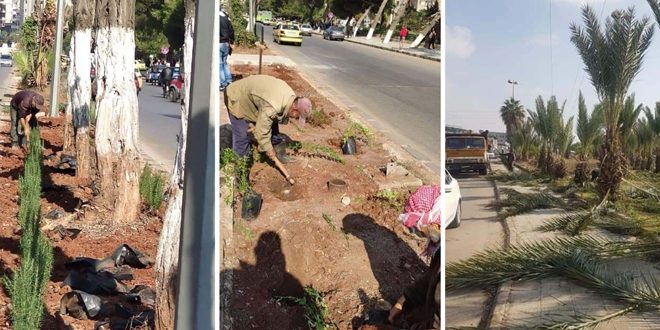 وبين مدير الحدائق في المجلس المهندس وليد عطية في تصريح لمراسلة سانا أنه تم الانتهاء من الأعمال الزراعية في منصف طريق دمشق وتقليم الأشجار وترحيل النواتج في أحياء عكرمة الجديدة والأرمن الشمالي والجنوبي وزراعة أشجار النخيل الثمري في منصف شارع مهدي الجواهري في حي الصناعة.