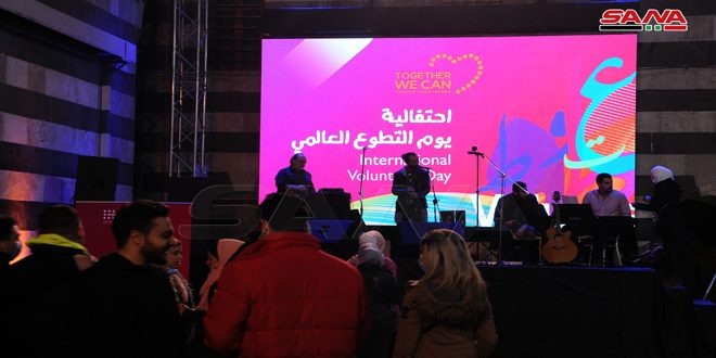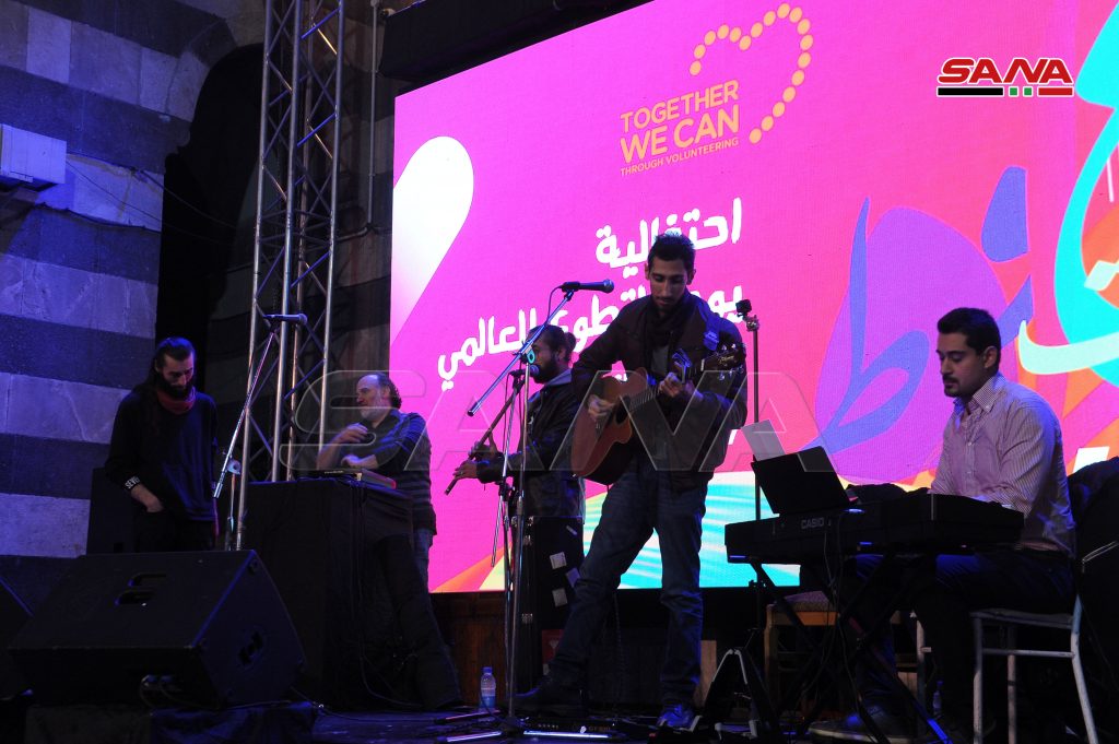 بمناسبة اليوم العالمي للتطوع أقامت جمعية نور للإغاثة والتنمية بدعم من صندوق الأمم المتحدة للسكان اليوم فعالية موسيقية ومعرضا للفن التشكيلي في خان أسعد باشا بدمشق.