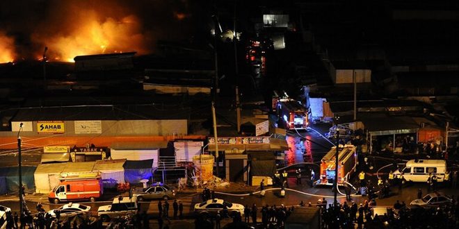 اندلع حريق صباح اليوم في جناح لبيع الألعاب النارية بسوق (كلاسيك) في مدينة روستوف جنوب روسيا.