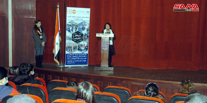 وأوضحت رئيسة فرع جمعية تنظيم الأسرة السورية بالسويداء إقبال حامد في كلمة لها أهمية دور الجمعية بالعمل على نشر التوعية لنبذ ومواجهة العنف.