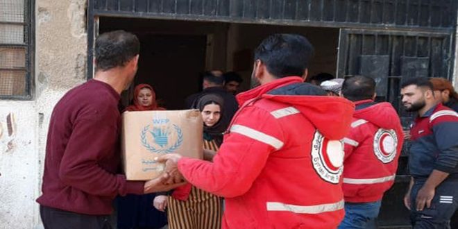 بدأ فرع منظمة الهلال الأحمر العربي السوري في الحسكة توزيع مساعدات اغاثية مقدمة من برنامج الأغذية العالمي.
