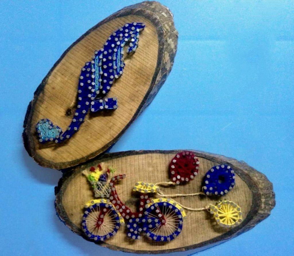 وتقول الشابة أسعد لـ سانا سياحة ومجتمع إن شغفها بعالم التصميم ومزج الألوان والاطلاع على كل ما هو جديد في هذا المجال ساعدها في تطوير ذاتها وبدأت بالرسم على القطع الخشبية باستخدام المسامير والخيطان أو الحفر بالليزر.