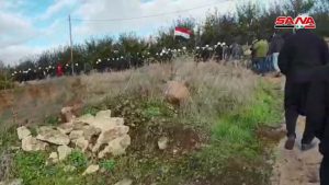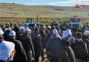 وتجمع الأهالي منذ ساعات الصباح الباكر عند مقام اليعفوري بين قرية مجدل شمس ومسعدة المحتلة وانقسموا إلى مجموعات انتشرت في الأراضي المزمع إقامة مراوح عليها من قبل سلطات الاحتلال.