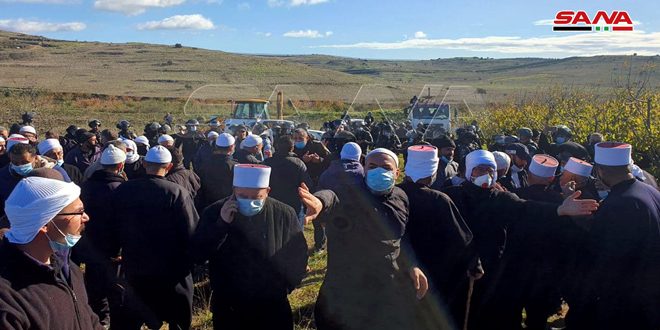 وفي بيان لها تلقت سانا نسخة منه جددت مشيخة العقل الوقوف مع أهالي الجولان السوري المحتل وتأييدها موقفهم كونهم أصحاب أرض وحق ضد كل معتد وغاصب والوقوف خلف القيادة السورية والجيش العربي السوري لاسترجاع كل شبر من أرض الجولان العربي السوري المحتل.