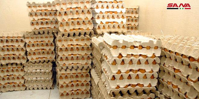 أعلن باسل حاتم المدير المالي والإداري في منشأة دواجن السويداء أنه تم طرح نحو 150 ألف بيضة للبيع مباشرة بأسعار مخفضة عن السوق عبر صالتي بيع المؤسسة ومنافذ بيع فرع المؤسسة السورية للتجارة خلال الشهر الماضي وبسعر 4800 ليرة للطبق الواحد وذلك كنوع من التدخل الإيجابي للمساهمة بضبط أسعار المادة بالسوق ومنع احتكارها من قبل أي جهة.