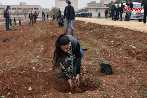 نفذت جامعة حماة بالتعاون مع فرع الاتحاد الوطني لطلبة سورية ونقابة المعلمين وشعبة التعليم العالي اليوم حملة تشجير في تجمع الكليات المصغر بحي الشريعة بمشاركة عدد من طلبة الجامعة.