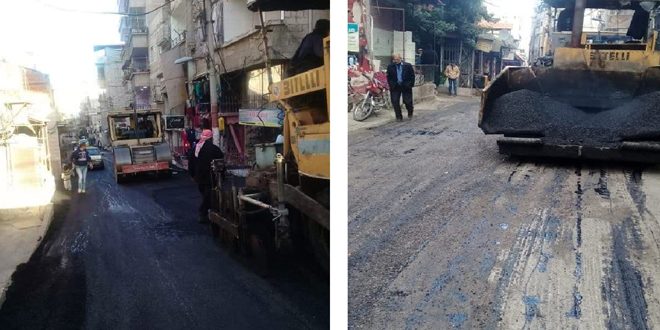 ضمن خطة محافظة دمشق لتحسين الواقع الخدمي تواصل ورشاتها أعمال تزفيت عدد من شوارع المدينة وأحيائها.