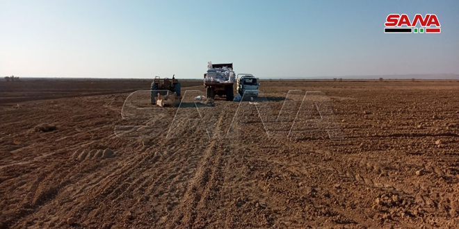 استأنف المزارعون في منطقة البيارات الغربية ببادية تدمر زراعة أراضيهم في اطار تنفيذ الخطة الزراعية الشتوية لزراعة القمح والشعير بعد أن تمت ازالة جميع الألغام التي زرعها الإرهابيون قبل اندحارهم من المنطقة على أيدي ابطال الجيش العربي السوري.