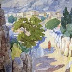 كما عمل عبر تجربته الطويلة على لوحاته بصيغ فنية مختلفة وأصيلة تعكس رؤيته وتصوره فكان شغوفاً بالمناظر الطبيعية التي اندمج معها من خلال ألوانه المتناغمة والمنسجمة ليتأثر فيما بعد بالمدرسة الانطباعية التي كان في طليعة مؤسسيها في سورية ومن لوحاته الهامة وخيمة عرب وكرم التين.
