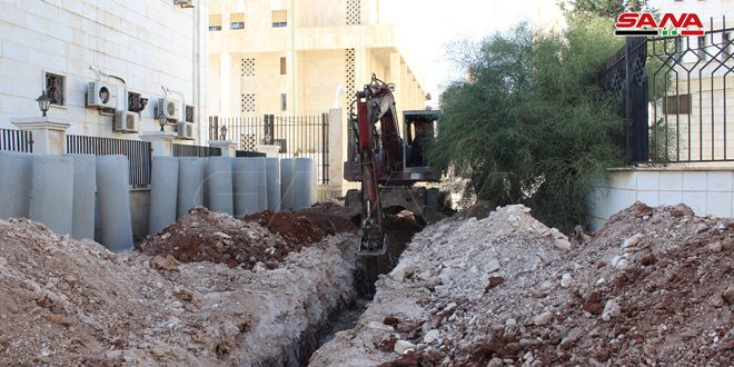 باشرت مديرية الخدمات الفنية في درعا بتنفيذ مشروع خط صرف صحي منفصل لصالح تجمع كليات درعا التابعة لجامعة دمشق في منطقة البانوراما.