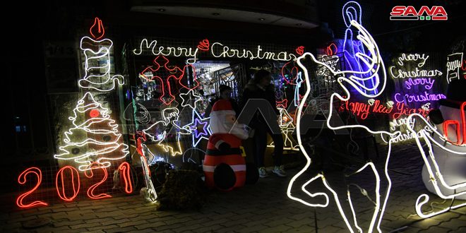 مع اقتراب حلول عيد الميلاد المجيد تتحول أحياء باب توما والقصاع وباب شرقي إلى لوحة مزدانة بالألوان المضيئة حيث تحرص الأسر على تزيين منازلها وشرفاتها بالأضواء والإكسسوارات.