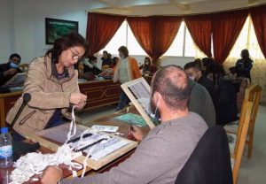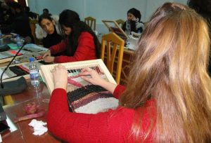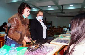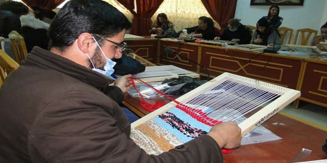 المدربة يسرى إبراهيم أشارت إلى أن المتدربين يتعلمون على صنع بسط على الأنوال وكيفية حياكتها وإدخال الألوان القماشية فيما بينها للحصول على قطع يستفيدون منها في منازلهم.