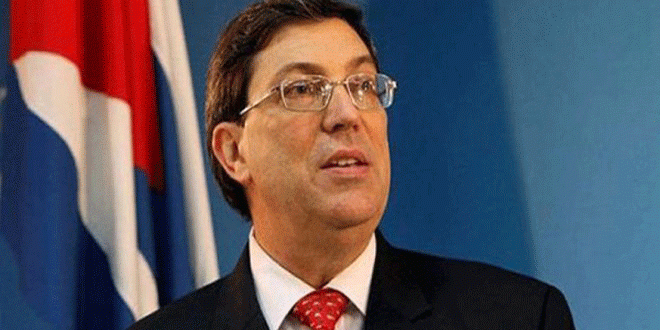 أكد وزير الخارجية الكوبي برونو رودريغيز أن السياسة الخارجية للولايات المتحدة الأمريكية تجاه بلاده تنتهك القانون الدولي وتقوم على أسلوب العداء والتآمر.