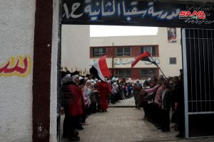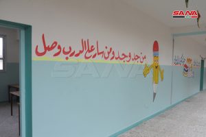 مدير تربية ريف دمشق ماهر فرج أكد في تصريح للصحفيين حرص وزارة التربية على إعادة إعمار وتأهيل المدارس جميعها في منطقة الريف التي تعرضت للتخريب جراء اعتداءات التنظيمات الإرهابية مبيناً أن المدرسة تضم 11 غرفة صفية و5 غرف إدارية وقاعة يتم تجهيزها كروضة أطفال ملحقة بالمدرسة ليتم وضع المدرسة بالخدمة مع بداية الفصل الدراسي الثاني.