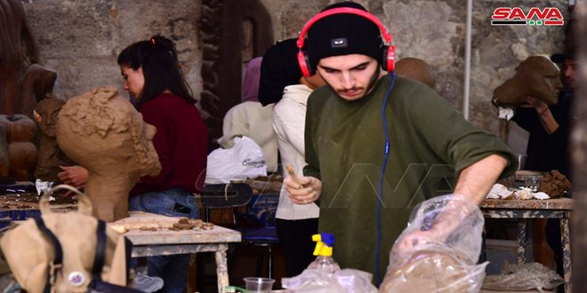 دمشق-سانا بهدف دعم الفنانين الشباب وإبراز مواهبهم وإبداعاتهم احتضنت قلعة دمشق للمرة الأولى مسابقة نحت …