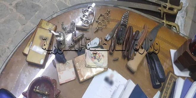 وذكرت وزارة الداخلية في بيان لها اليوم تلقت سانا نسخة منه أنه بناء على المعلومات الواردة إلى قسم شرطة القصاع بدمشق حول وجود أشخاص يقومون بسلب المواطنين ليلا في محلة الدويلعة ويسرقون الدراجات النارية تم تسيير دوريات المتابعة والرصد وإلقاء القبض على المدعو ظافر.خ الملقب بالسبع وبالتحقيق معه اعترف بإقدامه على هذه الأعمال وتعاطي المواد المخدرة بالاشتراك مع شخصين متواريين عن الأنظار.