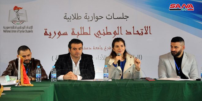 على مدى ثلاثة أيام ناقش المشاركون في الجلسات الحوارية التي نظمها الاتحاد الوطني لطلبة سورية في الجامعات آليات تطوير عمل المنظمة والتحديات التي تواجهها وسبل تجاوز نقاط الضعف وتعزير الإيجابيات لديها بما ينعكس على الخدمات التي تقدمها وذلك بناء على استبيان تم توزيعه على 4000 طالب من الكوادر القيادية للاتحاد وطلبة الجامعات الحكومية والخاصة.