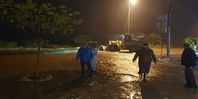 وأوضح محمد خالد زين رئيس المجلس في تصريح لمراسلة سانا أن الأمطار الغزيرة التي هطلت لساعات متواصلة اليوم أدت إلى اختناقات في بعض الأماكن بالمدينة مبيناً أن الورشات قامت بتعزيل البعض منها ومازال العمل مستمراً حتى الساعة.