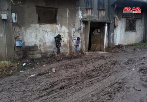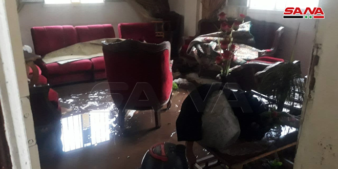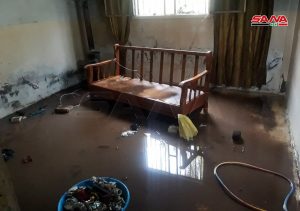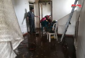 المواطن محمد دامرجي من أهالي الحي الشرقي من مدينة تلكلخ قال “نتيجة الأمطار الغزيرة ليلا فاض النهر الذي يمر وسط المدينة محملا بالأتربة القادمة من جبل غليوم ما أدى لدخول المياه إلى عدد من المنازل واقتصرت الأضرار على الماديات”.