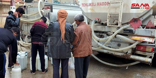 ووفق الكاين فإن الصهاريج الثمانية ستؤمن يوميا نحو ألف برميل سيتم توزيعها على الأهالي بإشراف المكتب التنفيذي ومديرية الشؤون الاجتماعية والعمل إضافة للاستمرار بتأمين المياه الصالحة للشرب عبر تعبئة الخزانات المنتشرة في أرجاء المدينة والبالغ عددها 100 خزان كبير.
