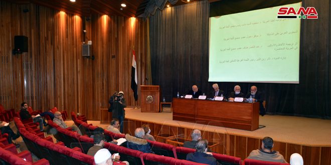 التحديات والصعوبات التي تواجه اللغة العربية وضرورة الحفاظ عليها وتمكينها في كل المجالات باعتبارها رمز هويتنا وقوميتنا وعروبتنا محاور تناولتها ندوة استضافتها مكتبة الأسد الوطنية اليوم بمشاركة أساتذة جامعيين وباحثين لغويين.