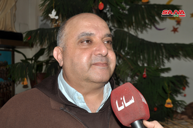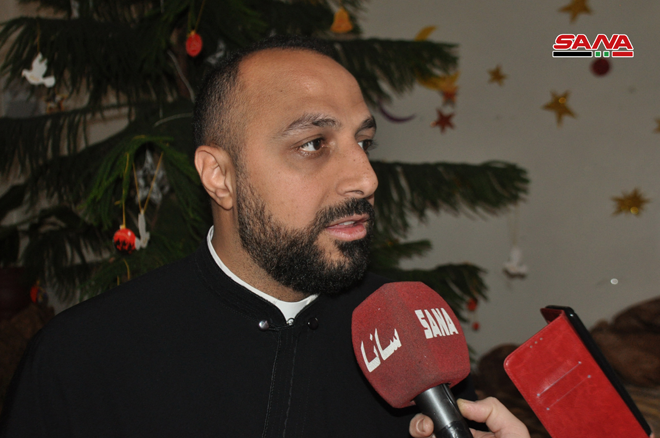 بدوره لفت الأب مهند جبيل راعي كنيسة الملاك ميخائيل للروم الملكيين الكاثوليك في بلدة القريا إلى أن أبناء البلدة جاؤوا للاحتفال وأبناء السويداء بعيد الميلاد في كنيسة يسوع الملك لإدخال السرور والفرح إلى نفوس الأطفال تعبيراً عما نعيشه في هذه المحافظة المميزة بوحدتها ولحمتها وتآخيها بجميع ألوانها وأطيافها رافعاً الدعوات لأن يحمي الله شعبنا وجيشنا وقائدنا ويمنحهم السلام والصحة والعافية وأن يشفي جميع المرضى.