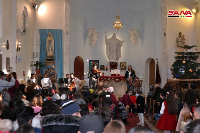 وسط أجواء من الفرح والبهجة والمحبة شارك مئات الأطفال في احتفاليتين نظمتهما عدد من الكنائس في مدينة السويداء بمناسبة عيد الميلاد المجيد تخللتهما عروض مسرحية وفقرات موسيقية وتوزيع الهدايا.