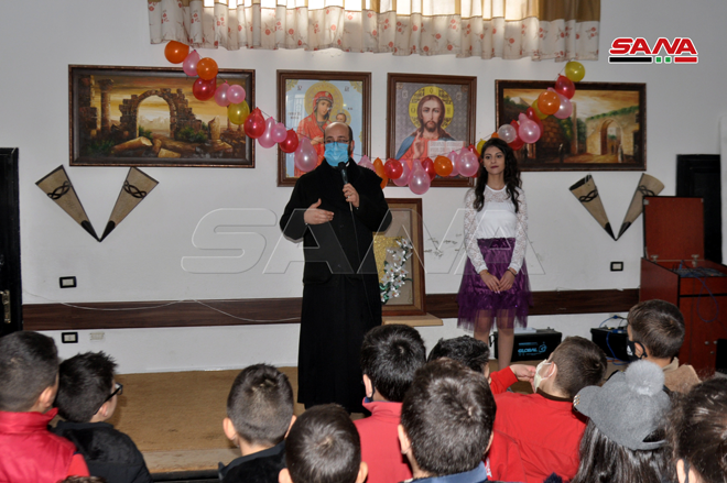 ففي مطرانية بصرى وحوران وجبل العرب للروم الأرثوذكس نظمت كنيسة مار جاورجيوس في مدينة السويداء حفلاً للأطفال من جميع أطياف المجتمع بمناسبة عيد الميلاد مع الالتزام بالإجراءات الوقائية كما أوضح راعي الكنيسة الأب نقولا وقاص لترسيخ معاني الميلاد والمحبة والتآخي بين الجميع حيث ضم فقرات متنوعة فنية ومسرحية مع توزيع الهدايا لإدخال البهجة والفرح إلى قلوب الأطفال وزرع البسمة على وجوههم متمنياً أن يكون ميلاد السيد المسيح هذا العام يحمل ولادة جديدة لكل السوريين وأن يعم الخير والمحبة والسلام في ربوع سورية.