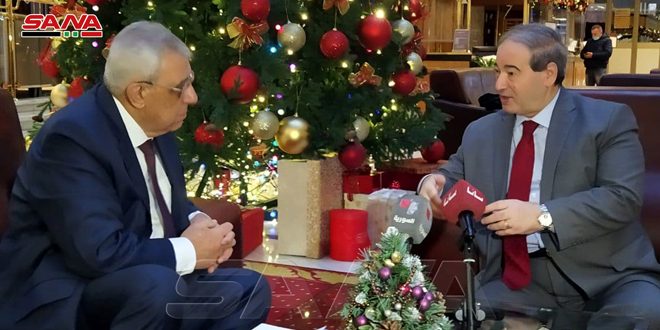 ووجه المقداد في ختام مقابلته التهنئة بعيد الميلاد ورأس السنة للمسيحيين في العالم وسورية داعياً إلى احترام قيم العدل والسلام والإيمان والمساواة التي أتى بها السيد المسيح عليه السلام لينشرها في كل أنحاء العالم.