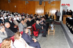 بمناسبة اليوم العالمي للغة العربية أقامت جامعة دمشق اليوم احتفالية ثقافية في المدرج السادس بكلية الآداب والعلوم الإنسانية أكد المشاركون فيها أهمية الحفاظ على اللغة العربية وصونها كونها تمثل الحصن المنيع لهوية ووحدة الشعب العربي والوعاء الذي يحمل إرثه الثقافي والحضاري.