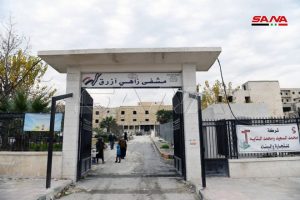كاميرا سانا جالت على عدد من المراكز الصحية والمشافي واطلعت على مستوى الخدمات الطبية التي تقدمها للمواطنين إضافة لأعمال الصيانة وإعادة التأهيل ومنها مشفى زاهي أزرق في منطقة بستان الباشا الذي أعيد افتتاحه جزئياً ريثما تنتهي أعمال الصيانة والتأهيل حيث أوضح الدكتور عبد الهادي الحمود رئيس الأطباء المقيمين بالمشفى أنه تمت إعادة تفعيل عيادات القلبية والهضمية والداخلية والصدرية والمفاصل والتصلب اللويحي منذ بداية هذا العام لاستقبال المرضى على مدار الأسبوع وإجراء كل التحاليل الإسعافية وتخطيط القلب وصور الصدر الشعاعية والطبقي المحوري وايكو القلب ويتم العمل على إعادة تأهيل باقي الأقسام الطبية لافتتاح المشفى بشكل كامل.