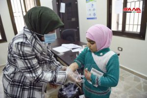 وأشار طه إلى استمرار حملات اللقاح الوطنية لتلقيح الأطفال في المحافظة والتمكن من دخول الفرق الطبية إلى مدينة عين العرب بعد غياب أكثر من خمس سنوات وتلقيح الأطفال فيها والاستمرار بتقديم العلاجات الطبية للمرضى في المراكز التخصصية ومنها السكري والسل واللايشمانيا ومركز التلاسيميا وقسم الأورام في مشفى ابن رشد الذي يقدم العلاج الكيميائي للمرضى مجاناً.