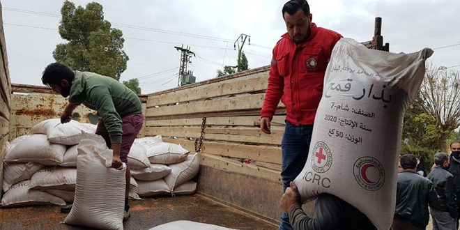 بدأ فرع منظمة الهلال الأحمر العربي السوري في محافظة الحسكة توزيع منحة بذار القمح والشعير على المزارعين في مختلف مناطق ريف المحافظة.