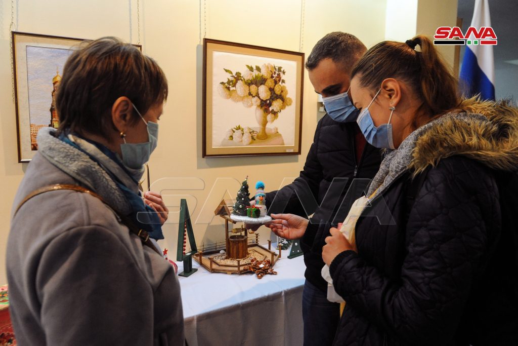 وأشار نيكولاي سوخوف مدير المركز الثقافي الروسي في تصريح لـ سانا إلى أن المعرض يضم أعمالا يدوية ولوحات فن تشكيلي وخط عربي من إبداع الجالية الروسية في سورية.