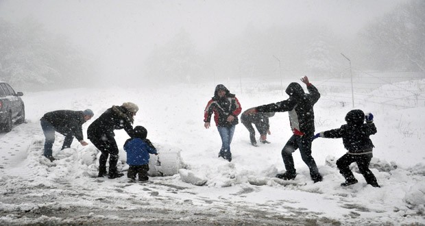 أطفال فرحون بالثلج ويلهون به- ريف حمص