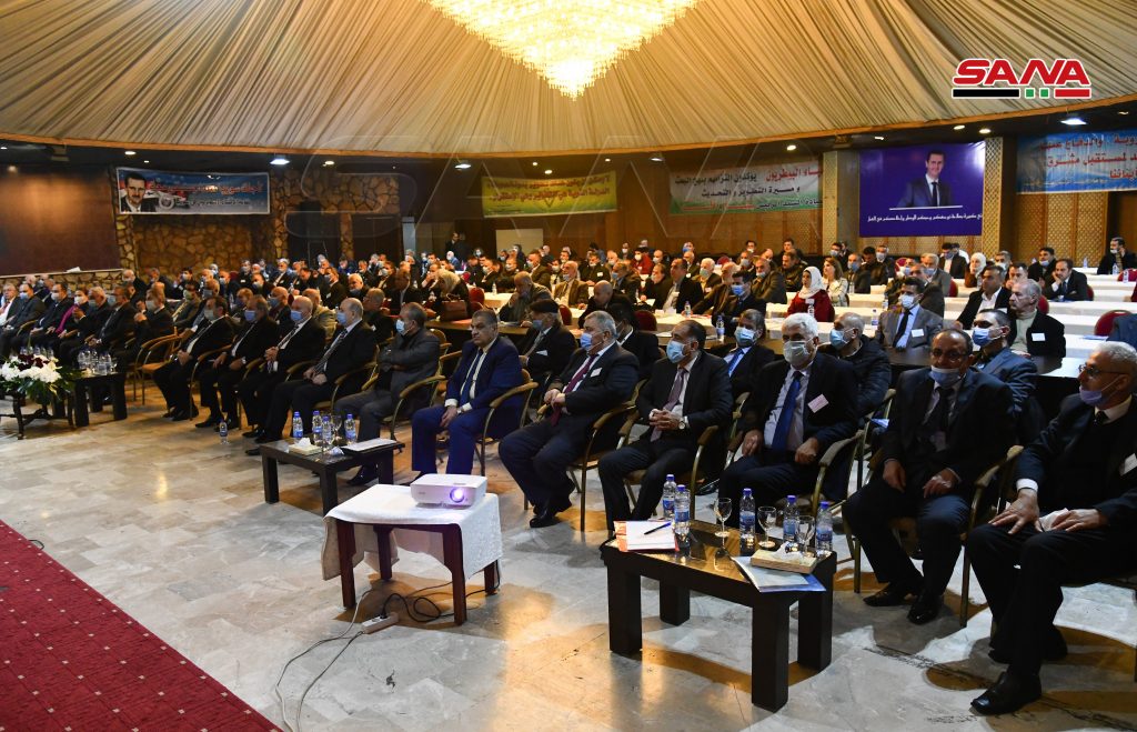 مدير الدواء البيطري في وزارة الزراعة الدكتور زياد نمور طالب الأطباء البيطريين بتقديم أفكار جديدة ومقترحات لتطوير وتوسيع آفاق قطاع الثروة الحيوانية مشيرا إلى أن هذا القطاع تعرض خلال سنوات الحرب الارهابية على سورية للعديد من الأعمال التخريبية وبالتالي خسارة في الإنتاج والمستلزمات ومن واجب الأطباء البيطريين خلال المرحلة المقبلة التنسيق بين نقابة الأطباء والوزارة لإعادة ترميم هذا القطاع وإعادته إلى ألقه.