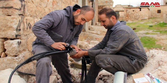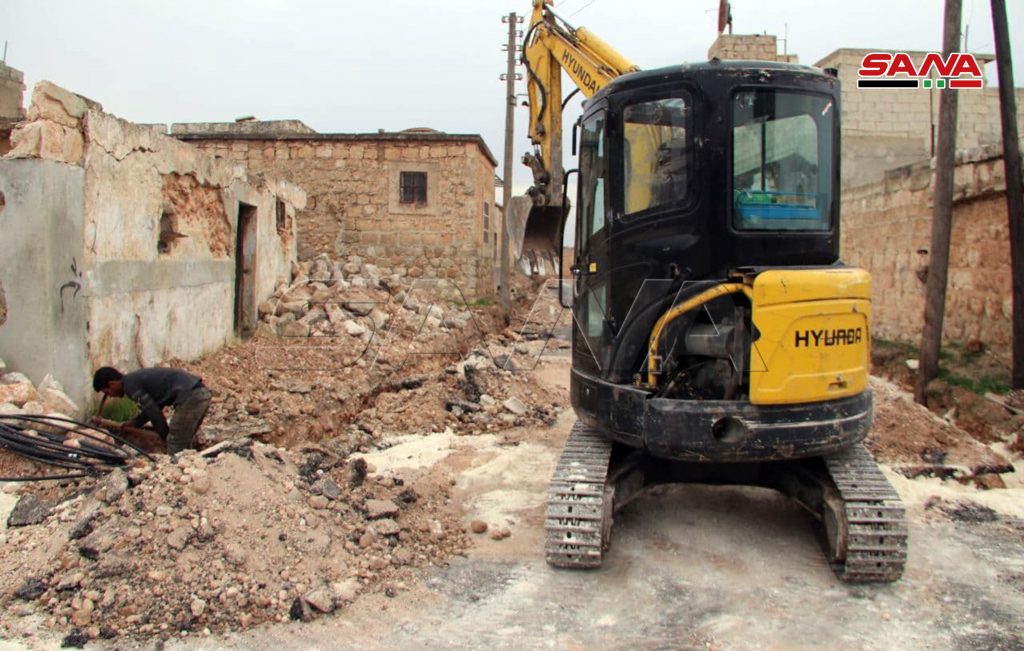 كاميرا سانا زارت أحد المشاريع الحيوية في بلدة حيان واطلعت على أعمال التأهيل ونسب الإنجاز حيث بين المهندس سمير غفير رئيس دائرة التنفيذ في فرع الشركة أن العمل يتم حاليا لإعادة تأهيل الشبكة الرئيسة والفرعية حيث تم رصد نحو 21 مليونا و845 ألف ليرة سورية لإنجاز المشروع خلال 40 يوما حيث بلغت نسبة الإنجاز حتى الآن نحو 30 بالمئة.