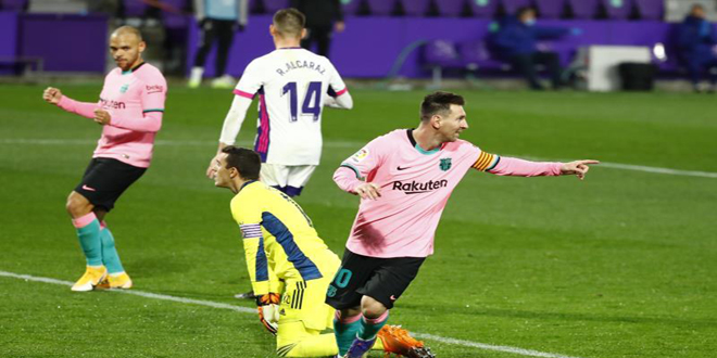 قدم برشلونة عرضاً قوياً وفاز خارج أرضه 3-صفر على ريال بلد الوليد في دوري الدرجة الأولى الإسباني لكرة القدم بينما سجل ليونيل ميسي هدفه الـ 644 مع النادي ليجتاز رقم الأسطورة بيليه في عدد الأهداف مع فريق واحد.