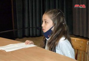 الطفلة إيلما مهنا من الصف الخامس استعادت ذكريات الشارع الذي تسلكه بين منزلها والمدرسة وهو يزهو بالأشجار الخضراء على جانبيه وتخيلت ذاك الحديث الذي دار بينها وبين الشجرة لتنسج قصيدتها (دمعة) على ذاك المنظر في رسالة طفولية للحفاظ على بيئة خضراء نظيفة.