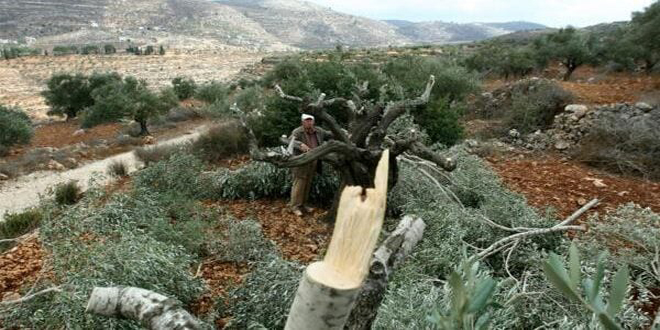 اعتدى مستوطنون إسرائيليون اليوم على أراضي الفلسطينيين شرق يطا جنوب الخليل بالضفة الغربية واقتلعوا عشرات أشجار الزيتون.