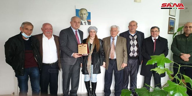 وفي نهاية اللقاء قدمت صابرين دياب منسقة اللجنة الشعبية للدفاع عن سورية درعاً للسفير الروسي باسم اللجنة تقديراً لجهود السفارة في دعم الحق الوطني الفلسطيني.
