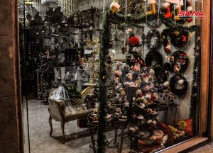 مظاهر الاحتفال بالعيد ظهرت جلية في كل مكان من مداخل الأبنية المزينة بالورود الحمراء والأكاليل المعلقة على الأبواب تتوسطها أجراس الفرح أو مجسمات بابا نويل، وأشجار عيد الميلاد في المقاهي والمحلات تلفت الأنظار بأضوائها الزاهية وكراتها الملونة.