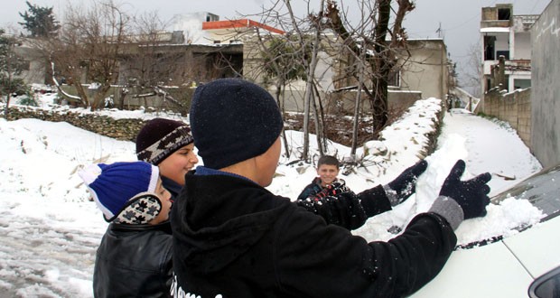 القدموس-قرية اسقبلة.. أطفال يلعبون بالثلج