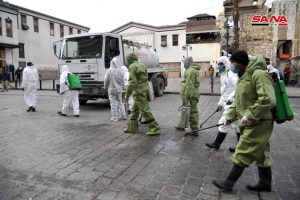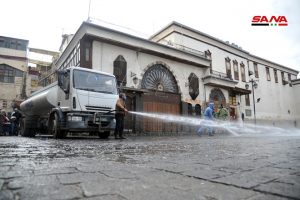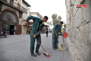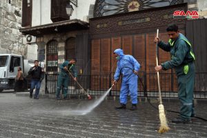 نفذت ورشات محافظة دمشق اليوم أعمال تعقيم وتنظيف وشطف في المدينة القديمة وفق برنامج تعمل عليه سيشمل الأسواق والأحياء والكراجات بهدف تعزيز إجراءات التصدي لفيروس كورونا.