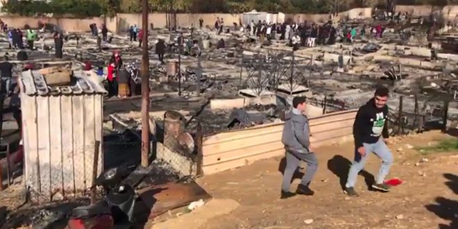 وأقدم عدد من الاشخاص أول أمس على احراق مخيم للمهجرين السوريين في قضاء المنية ما أدى إلى تشريد مئات المهجرين ووقوع أضرار مادية كبيرة.