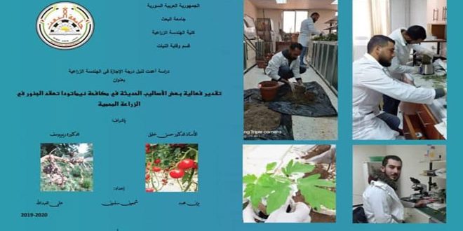 تقدير فعالية بعض الطرق والأساليب الحديثة في مكافحة (نيماتودا تعقد الجذور) في البيوت المحمية هو المشروع الذي فاز من خلاله حديثاً الطلاب يزن محمد وعلي عبد الله وشمعون سلمون من كلية الهندسة الزراعية بجامعة البعث بدعم مشروع قفزة للطلبة الجامعيين الذي تقيمه الجامعة بالتعاون مع برنامج الأمم المتحدة الإنمائي حيث أكد الطالب يزن في حديثه لـ سانا الشبابية أن فكرة المشروع انطلقت من ضرورة إيجاد مبيد زراعي طبيعي لآفة (النيماتودا) التي تسبب أضراراً كبيرة بأغلب المحاصيل الزراعية.