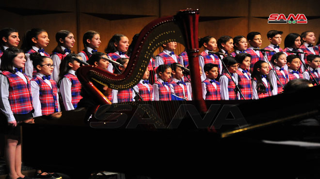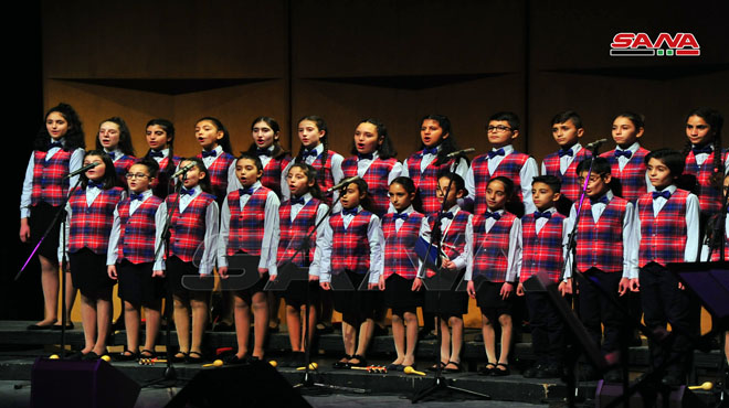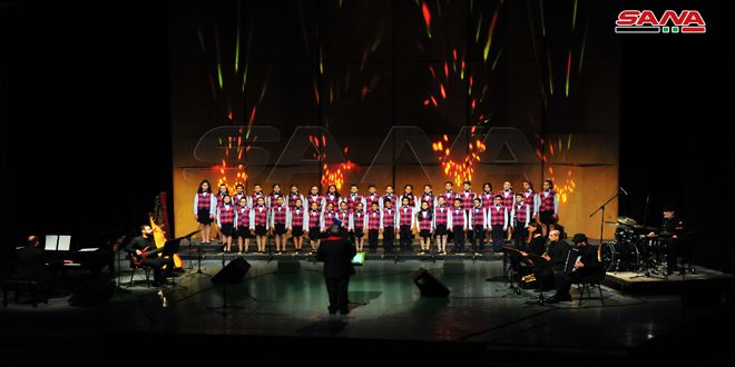 غنى أطفال جوقة “ألوان” للغناء الجماعي بقيادة المايسترو حسام الدين بريمو للحب والميلاد والشجرة ضمن أمسية غنائية احتضنها اليوم مسرح الأوبرا بدار الأسد للثقافة والفنون.